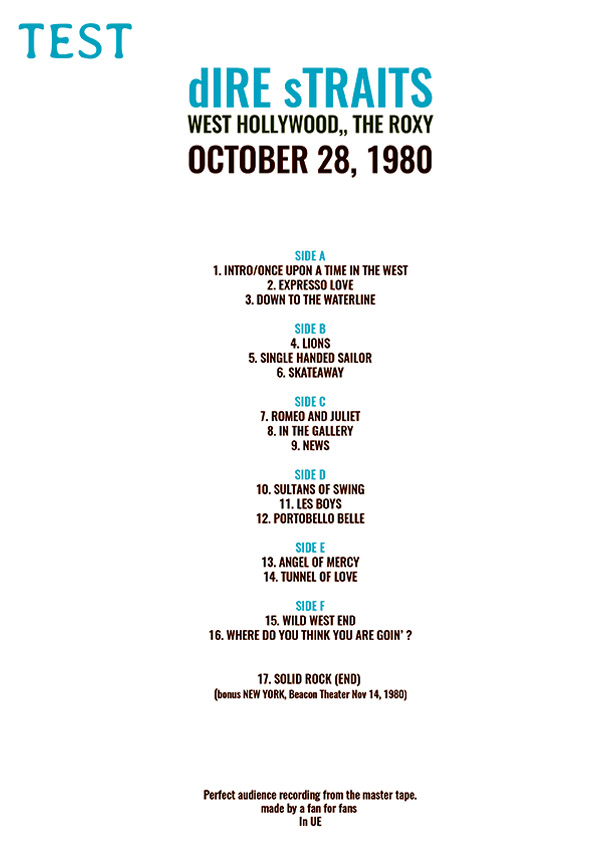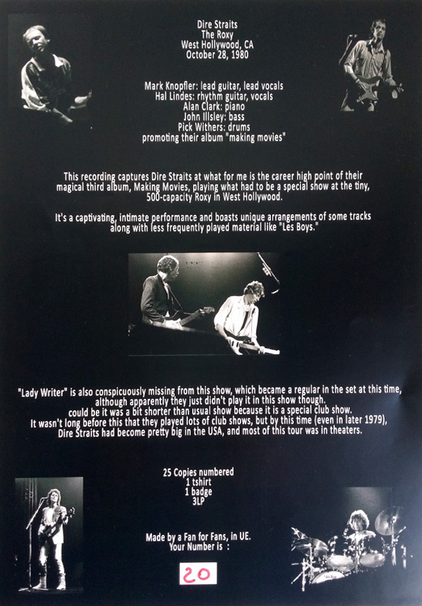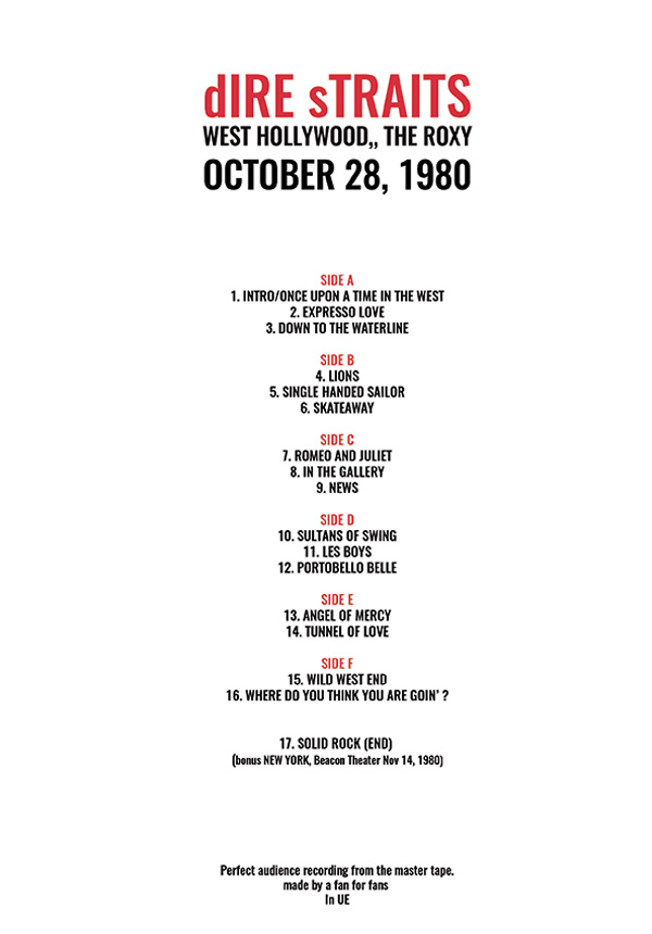 the printed guide "On Every Bootleg, the essential guide to Mark Knopfler bootlegs" (by Thomas Gygax, Andrea Villa & Achim Bress - 1994),